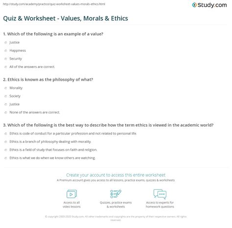 questions on moral values for students with answers